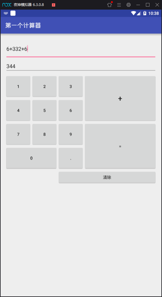<?xml version="1.0" encoding="utf-8"?> <RelativeLayout xmlns:android="http://schemas.android.com/apk/res/android" xmlns:tools="http://schemas.android.com/tools" android:layout_width="match_parent" android:layout_height="match_parent" android:paddingBottom="@dimen/activity_vertical_margin" android:paddingLeft="@dimen/activity_horizontal_margin" android:paddingRight="@dimen/activity_horizontal_margin" android:paddingTop="@dimen/activity_vertical_margin" android:orientation="vertical" tools:context="com.example.xialm.calculator.MainActivity"> <EditText android:id="@+id/ed_im1" android:layout_width="match_parent" android:layout_height="70dp" android:hint="输入栏" /> <EditText android:id="@+id/ed_im2" android:layout_width="match_parent" android:layout_height="wrap_content" android:hint="结果" android:layout_below="@+id/ed_im1" /> <GridLayout android:id="@+id/number" android:layout_width="match_parent" android:layout_height="wrap_content" android:rowCount="5" android:orientation="horizontal" android:columnCount="4" android:layout_below="@+id/ed_im2" android:layout_marginTop="5dp" > <Button android:id="@+id/bu_1" android:layout_width="wrap_content" android:layout_height="80dp" android:text="1" android:layout_row="0" android:layout_column="0" /> <Button android:id="@+id/bu_2" android:layout_width="wrap_content" android:layout_height="80dp" android:text="2" android:layout_row="0" android:layout_column="1" /> <Button android:id="@+id/bu_3" android:layout_width="wrap_content" android:layout_height="80dp" android:text="3" android:layout_row="0" android:layout_column="2" /> <Button android:id="@+id/bu_num" android:layout_width="wrap_content" android:layout_height="80dp" android:text="+" android:layout_gravity="fill" android:layout_rowSpan="2" android:layout_row="0" android:layout_column="3" android:textSize="50px" android:gravity="center" /> <Button android:id="@+id/bu_4" android:layout_width="wrap_content" android:layout_height="80dp" android:text="4" android:layout_row="1" android:layout_column="0" /> <Button android:id="@+id/bu_5" android:layout_width="wrap_content" android:layout_height="80dp" android:text="5" android:layout_row="1" android:layout_column="1" /> <Button android:id="@+id/bu_6" android:layout_width="wrap_content" android:layout_height="80dp" android:text="6" android:layout_row="1" android:layout_column="2" /> <Button android:id="@+id/bu_7" android:layout_width="wrap_content" android:layout_height="80dp" android:text="7" android:layout_row="2" android:layout_column="0" /> <Button android:id="@+id/bu_8" android:layout_width="wrap_content" android:layout_height="80dp" android:text="8" android:layout_row="2" android:layout_column="1" /> <Button android:id="@+id/bu_9" android:layout_width="wrap_content" android:layout_height="80dp" android:text="9" android:layout_row="2" android:layout_column="2" /> <Button android:id="@+id/bu_eq" android:layout_width="wrap_content" android:layout_height="80dp" android:text="=" android:layout_rowSpan="2" android:layout_gravity="fill" android:layout_row="2" android:layout_column="3" /> <Button android:id="@+id/bu_0" android:layout_width="wrap_content" android:layout_height="80dp" android:text="0" android:layout_columnSpan="2" android:layout_gravity="fill" android:layout_row="3" android:layout_column="0" /> <Button android:id="@+id/bu_point" android:layout_width="wrap_content" android:layout_height="80dp" android:text="." android:layout_row="3" android:layout_column="2" /> <Button android:id="@+id/bu_clear" android:layout_width="wrap_content" android:layout_height="wrap_content" android:text="清除" android:layout_row="4" android:layout_column="2" android:layout_columnSpan="2" android:layout_gravity="fill" /> </GridLayout> </RelativeLayout>