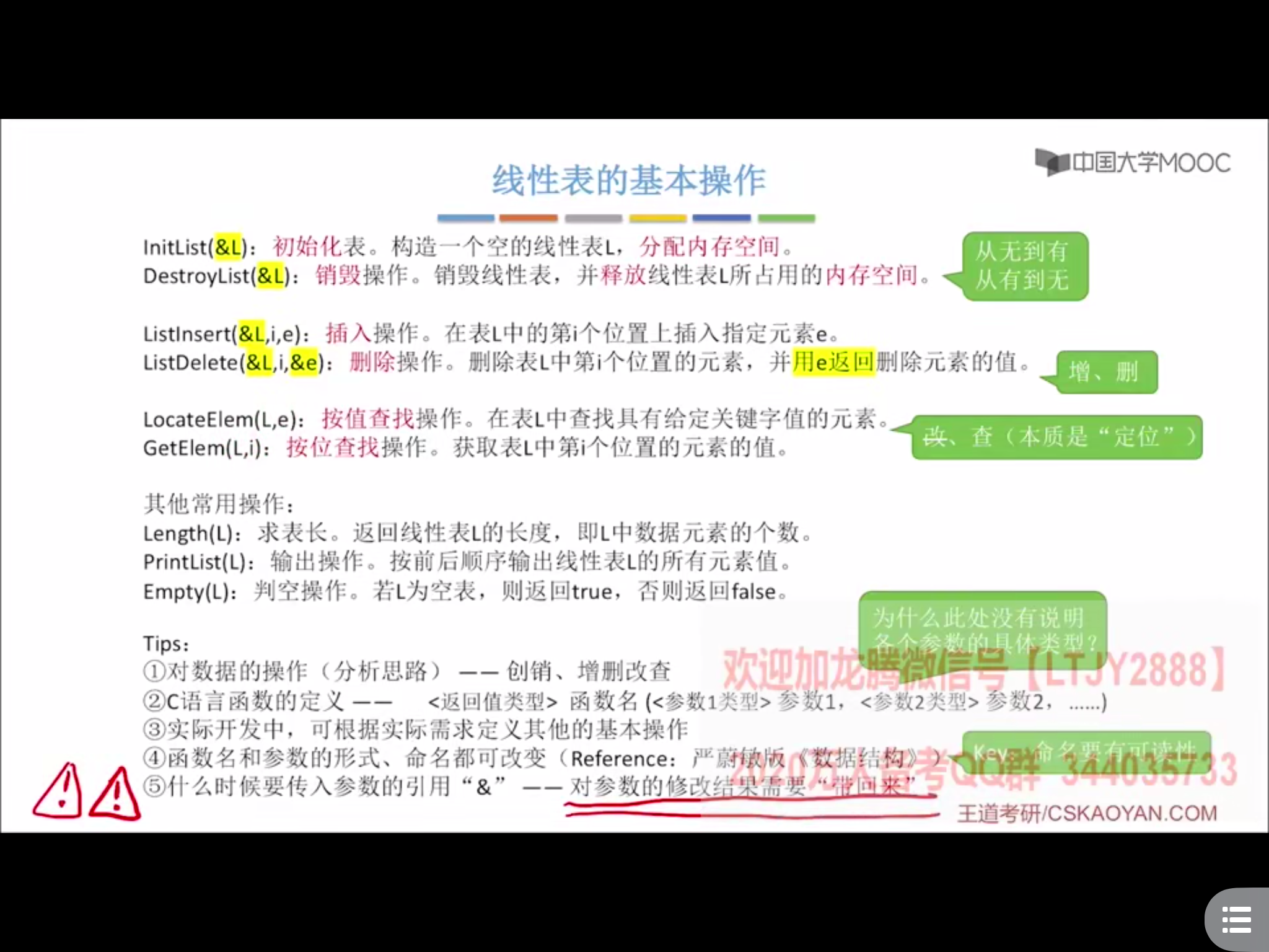 #include <iostream> using namespace std; #include <stdio.h> #define Maxsize 10 //定义一个最大长度 typedef struct{ int data[Maxsize]; //静态数组存放数据 int length; //顺序表的当前长度 }SL; //顺序表的类型定义 //基本操作 -- 初始化一个顺序表 void InitList(SL &L){ //参数是SL型 面向对象的语言格式 for (int i = 0; i < 10; i++) L.data[i] = 0; L.length = 0; //顺序表初始化当前长度为零 } int main() { SL L; //声明一个顺序表 InitList(L); //初始化顺序表 //现在可以操作顺序表了 return 0; }