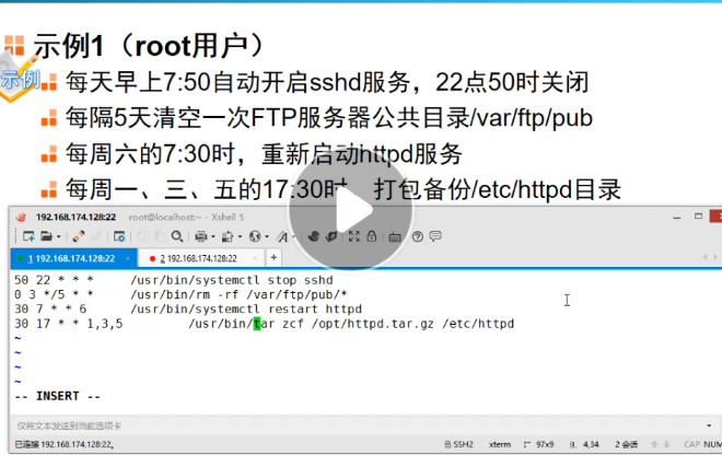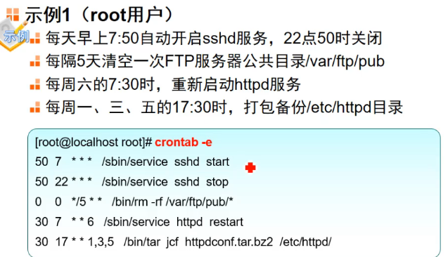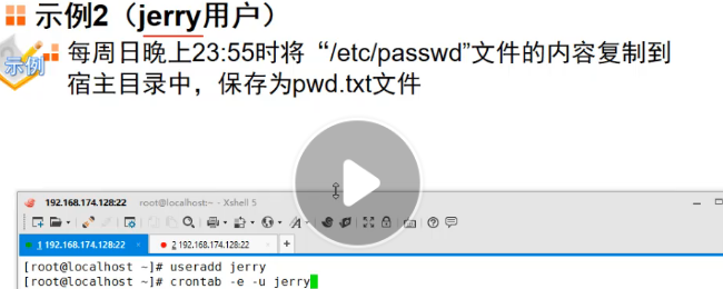 crontab -e [-u 用户名] 没有用户名默认管理员
