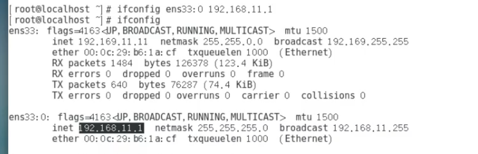 ifconfig ens33:0 192.168.11.1