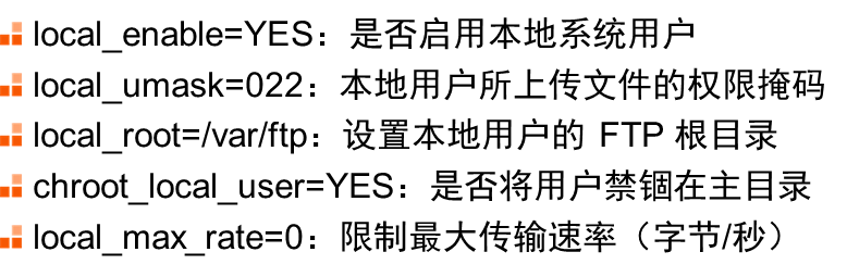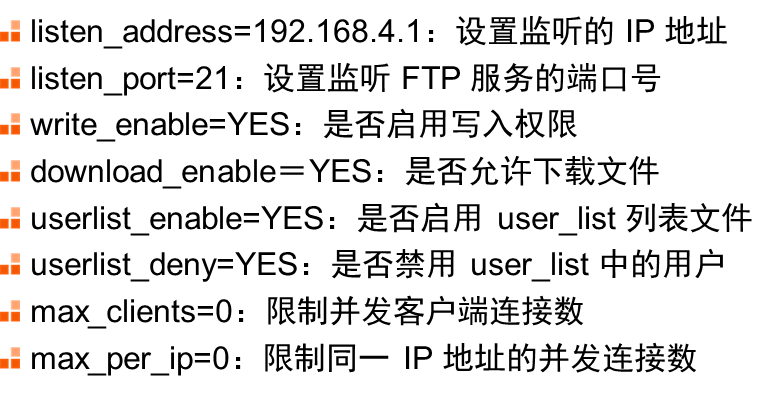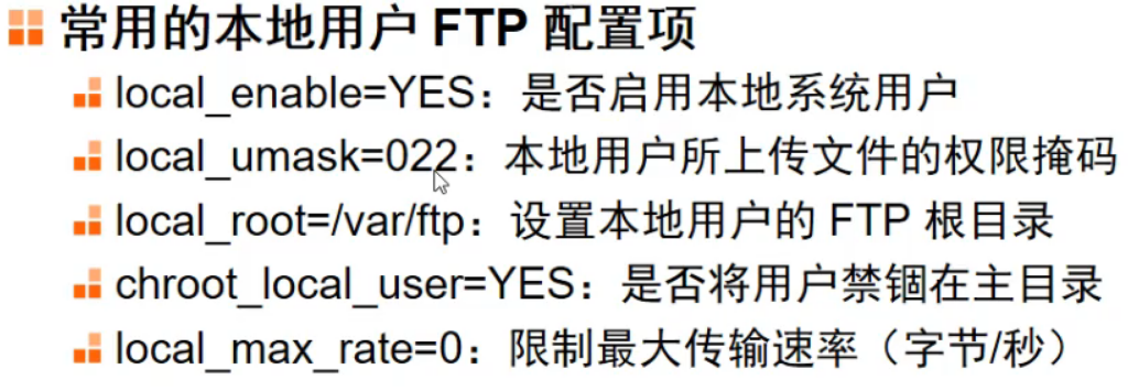 /etc/vsftpd/user_list 黑白名单文件,默认黑名单,一般用于白名单