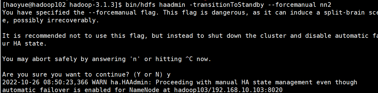 bin/hdfs haadmin -transitionToStandby --forcemanual nn2