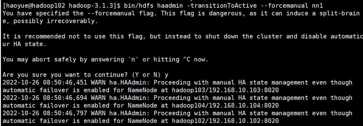 bin/hdfs haadmin -transitionToActive --forcemanual nn1