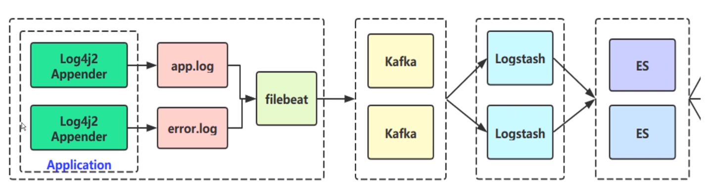 app.log 可能就是开发人员打的一些 info,或者一些其他级别的全量日志。error.log 就是一些错误日志。为什么要拆开呢?是因为要保证错误的日志我们能够更及时的去应用方感知,如果说我们的 app.log 有几千万条,我的 error.log 可能几十条,万一混到一起,最终可能会通过 filebeat 日志抓取插件,抓取这两个日志文件推到 kafka 集群上。Kafka 流入到 Logstash ,Logstash 就是对你的日志文件做一个具体解析,比如说 Java 里面可能会有 error 的堆栈信息,Exception 异常信息异常原因,在我们实际线上排查问题的时候是非常需要的。就是做一个日志解析操作,解析完了以后可能是一个 Json 直接传到 ES 里,让我们的 ES 引擎去做搜索,监控相关的事情