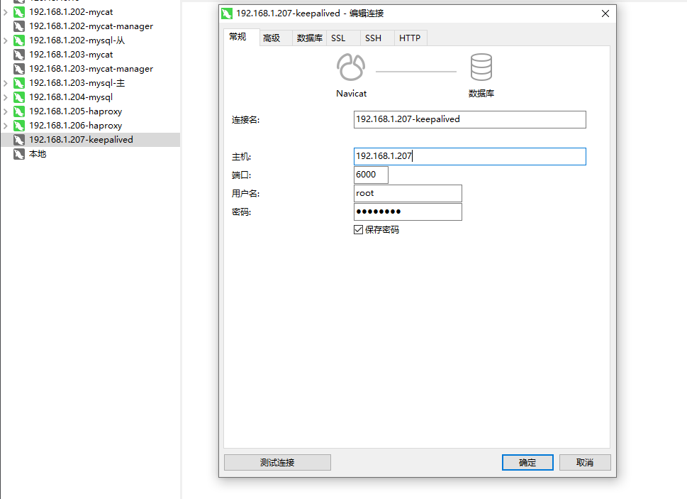 5、使用 Navicat 连接,使用 虚拟IP 连接