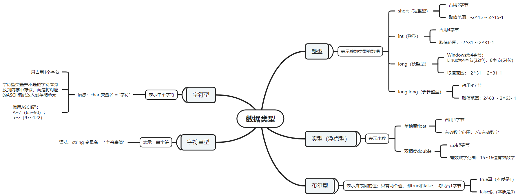 - C++规定在创建一个变量或者常量时,必须要制定出相应的数据类型,否则无法给变量分配内存