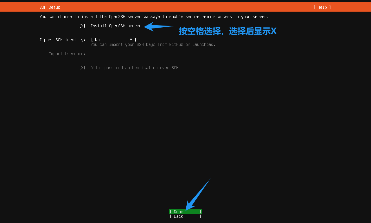 建议勾选 “Install OpenSSH server”,方便远程管理服务器。