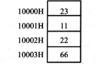 字单元:存放一个字型数据(16位)的内存单元,两个地址连续的内存单元组成,高地址存放高位字节,低地址存放低位字节。