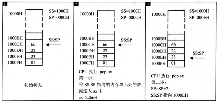 (2)将AX中的内容送入SS::SP指向的内存单元