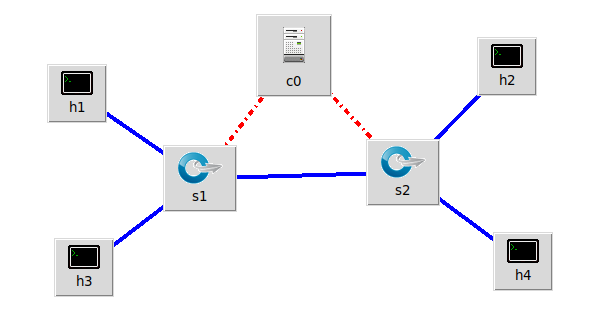- 搭建下图所示拓扑,完成相关 IP 配置,并实现主机与主机之间的 IP 通信。用抓包软件获取控制器与交换机之间的通信数据包。