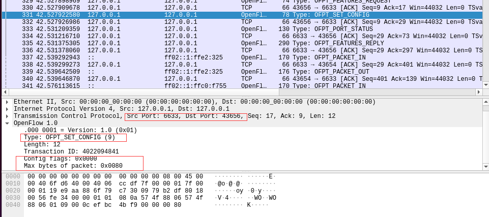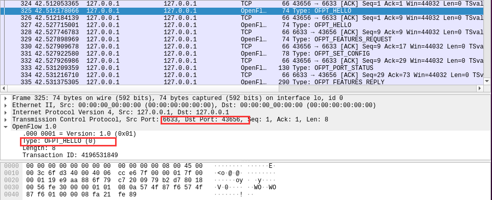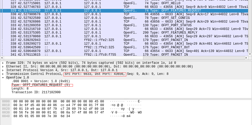 - 能够运用 wireshark 对 OpenFlow 协议数据交互过程进行抓包;