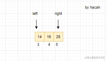 假设要找16,定义两个变量left,right存储一段数组的左边和右边下标