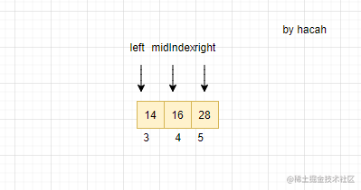 得到 (left + right) / 2中值midIndex是4,所以如下图。