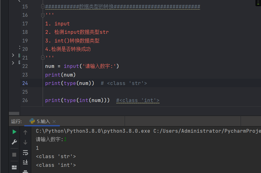 例如:input()接收用户输入的数据都是字符串,如果用户想输入1,想得到整型该怎么办?