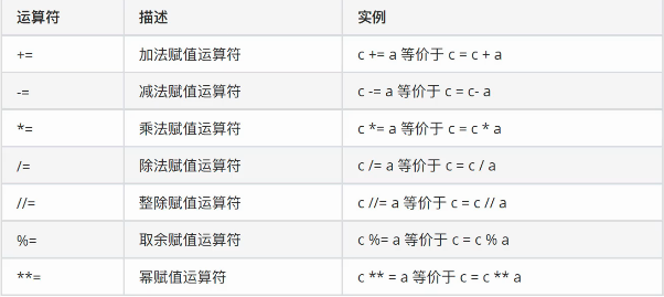 | = | 赋值 | 将=右侧的结果赋值给左侧的变量 |