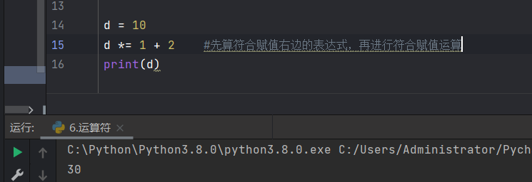 注意: 先算符合赋值右边的表达式,再进行符合赋值运算
