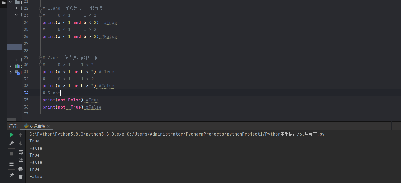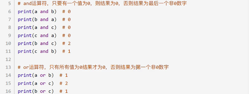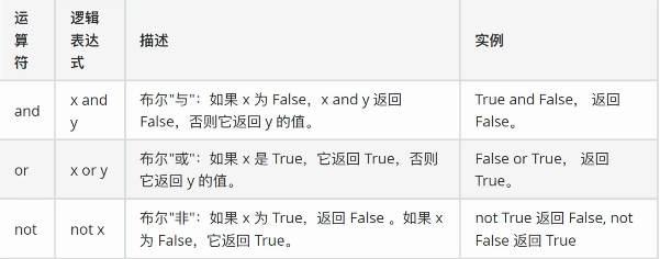 and ===>和 都真为真,一假为假 or ===>或 一真为真,都假为假 not ===>非 取反