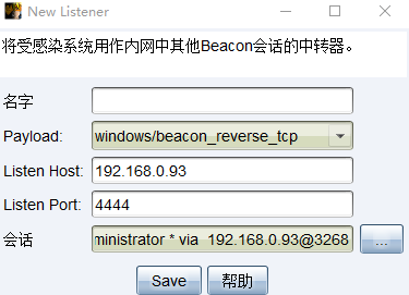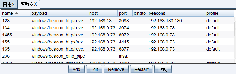 cobaltstrike里的监听器类似于msf里的exploit,一个监听器是一个payload配置信息,同时也用于cobaltstrike起的一个用于接受来自这个payload的连接指示,beacon 是cobaltstrike的内置监听器