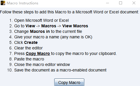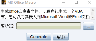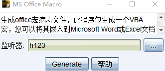 MS Office Macro生成一个宏文件,该宏文件用于嵌入Microsoft word 或 Microsoft execl文件里,生成该宏文件并提供嵌入的方法