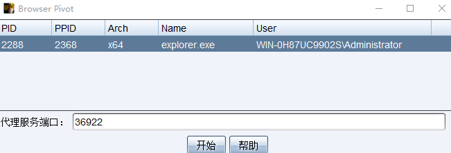 配置好端口信息后点击开始,然后cobaltstrike就会开始注入dll到进程里,随后我们就可以把目标机器作为浏览器代理