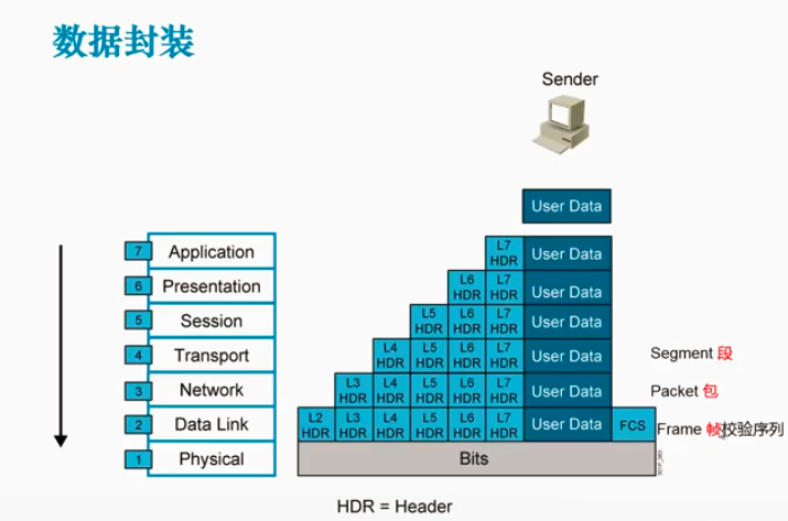 传输层:segment 网络层:packet 数据链路层:frame