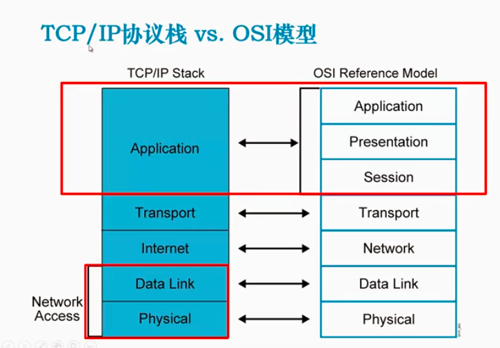 将七层分为四层,网络访问层到应用层