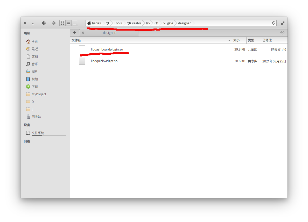 Linux版本:将xxx.so库文件拷贝至Qt/Tools/QtCreator/lib/qtcreator/plugins,Qt/Tools/QtCreator/lib/Qt/plugins/designer,Qt/5.15.2/gcc_64/plugins/designer(此处5.15.2/gcc_64为相应的编译器版本,可能使用库文件需要使用相同的编译器,还未尝试)