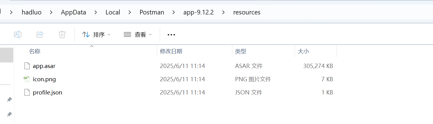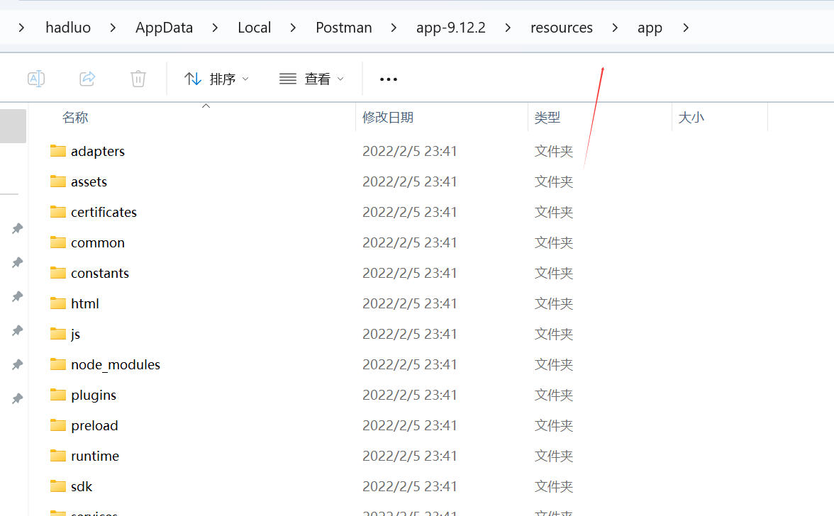 下载汉化补丁 app.zip,补丁就在上面的百度盘链接里面。进入到 Postman 安装目录下的 /resources 文件夹中:
