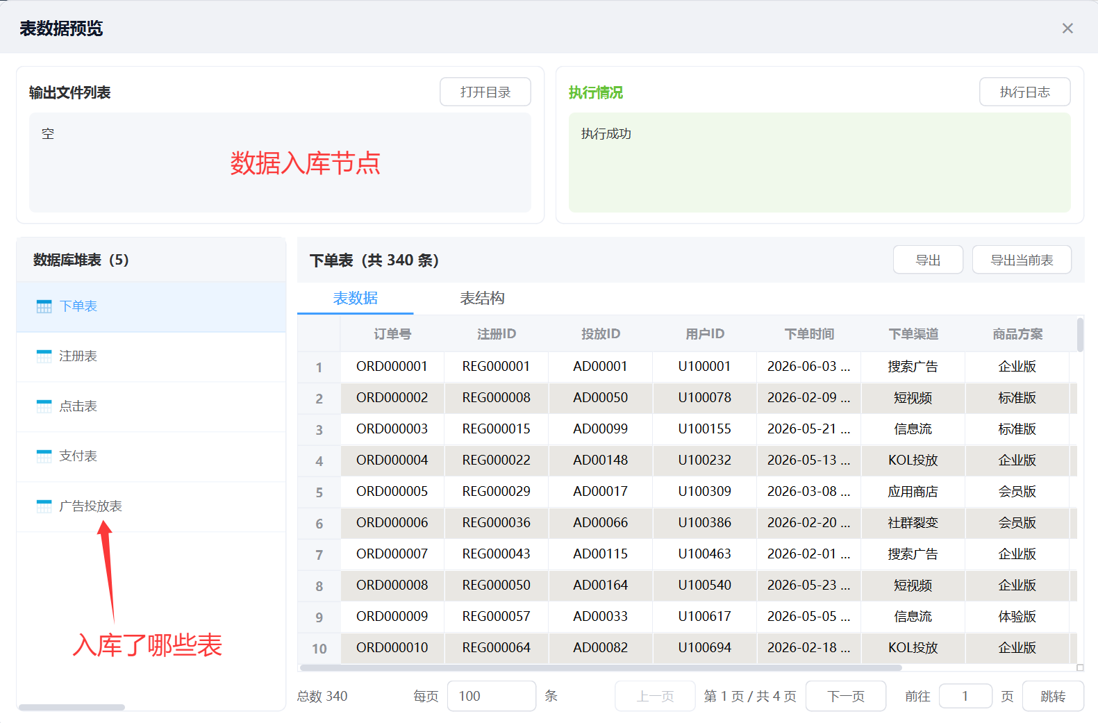 这样就把所有的订单子表获取到了。这个节点会有一个输出,输出就是获取的结果csv文件。