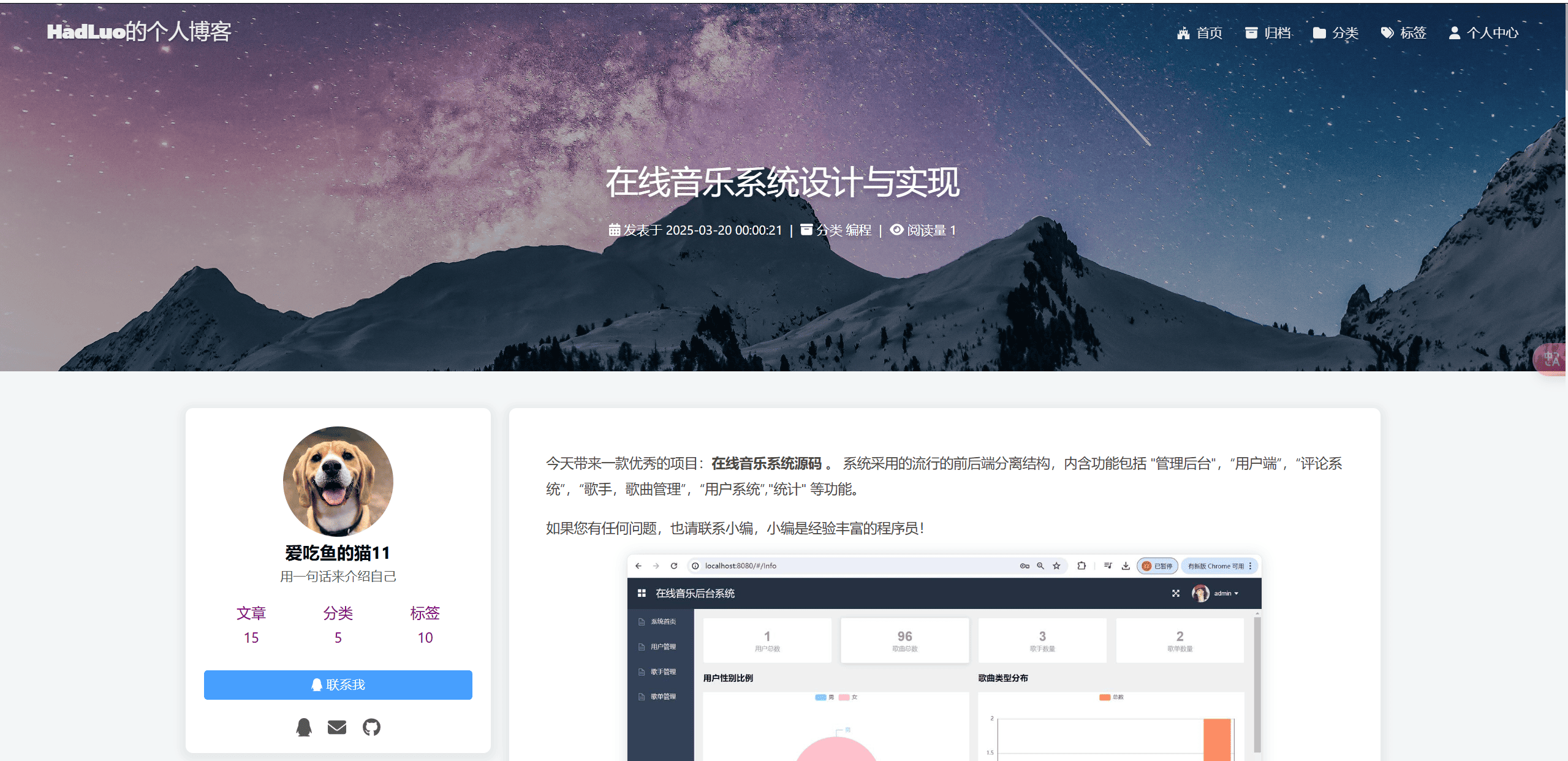 今天带来一款优秀的项目:个人博客系统源码 。 系统采用的流行的前后端分离结构,内含功能包括 "写博客文章",“修改博客文章”,“富文本编辑器”,“评论管理”“管理员角色”,“游客角色”,“文章标签”,“文章分类”