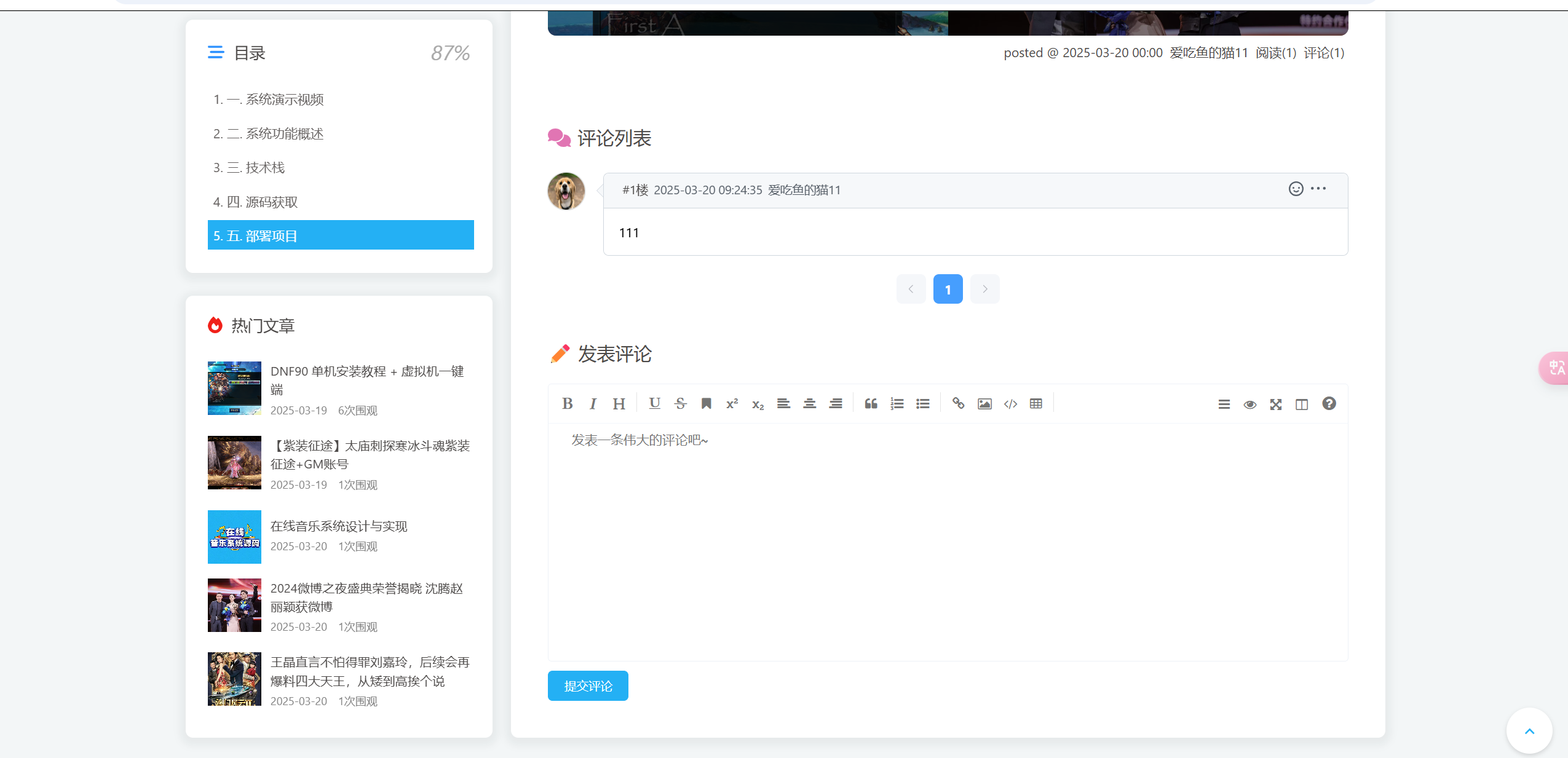 - 评论系统(可以评论图片,链接等)