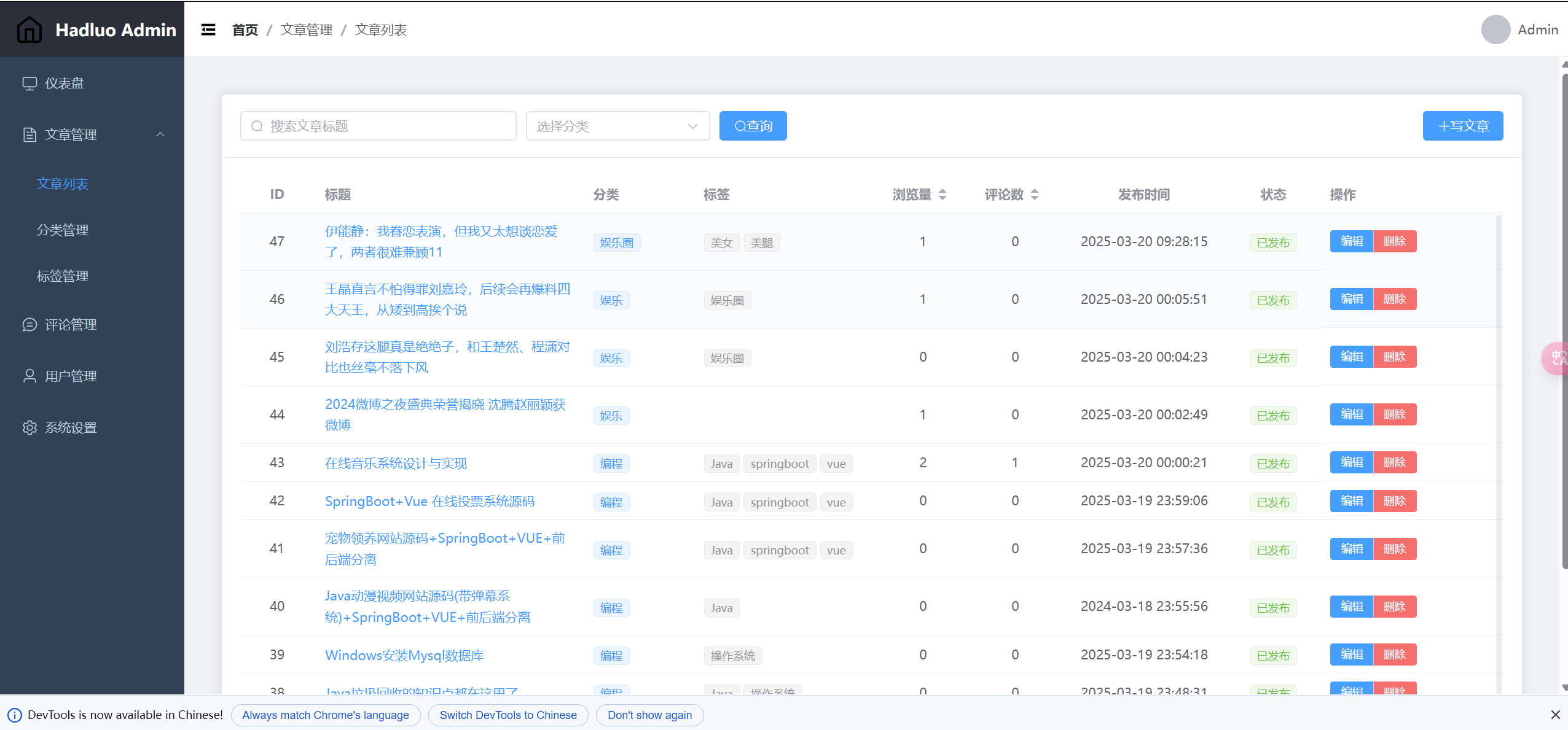 - 博客文章的增删改查