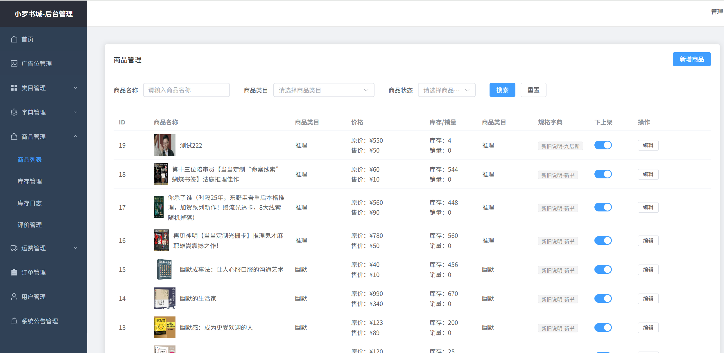 商城是一款比较庞大的系统,需要有商品中心,库存中心,订单中心,收货地址和运费管理。先看下我们要实现的商城有哪些功能:
