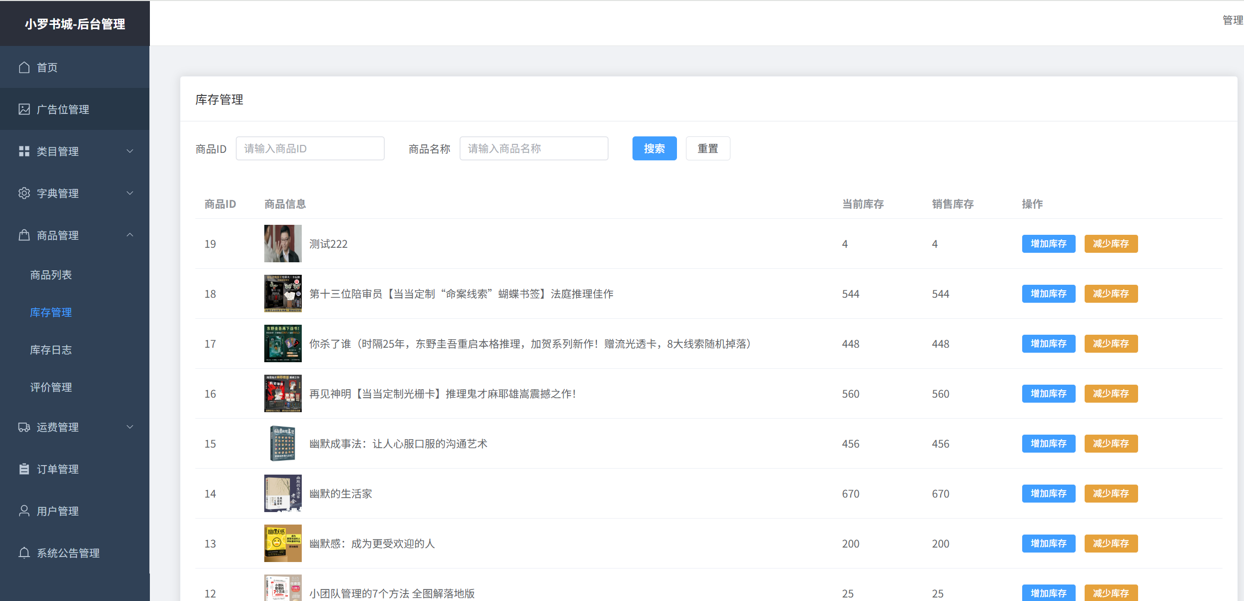 4. 后台我们设计的是对商品只能加加库存,和减少库存的操作,而不是直接修改库存值。如果你直接修改库存值,就有可能会导致库存数据不一致,难以跟踪。