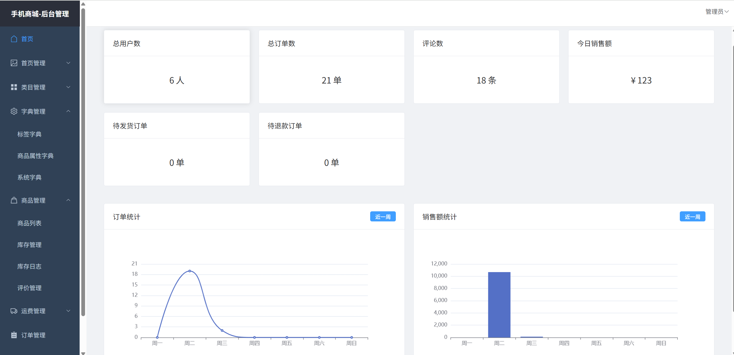 对应着后台就是分类管理, 前端会在头部导航栏的 "全部手机" 板块展示这个分类。