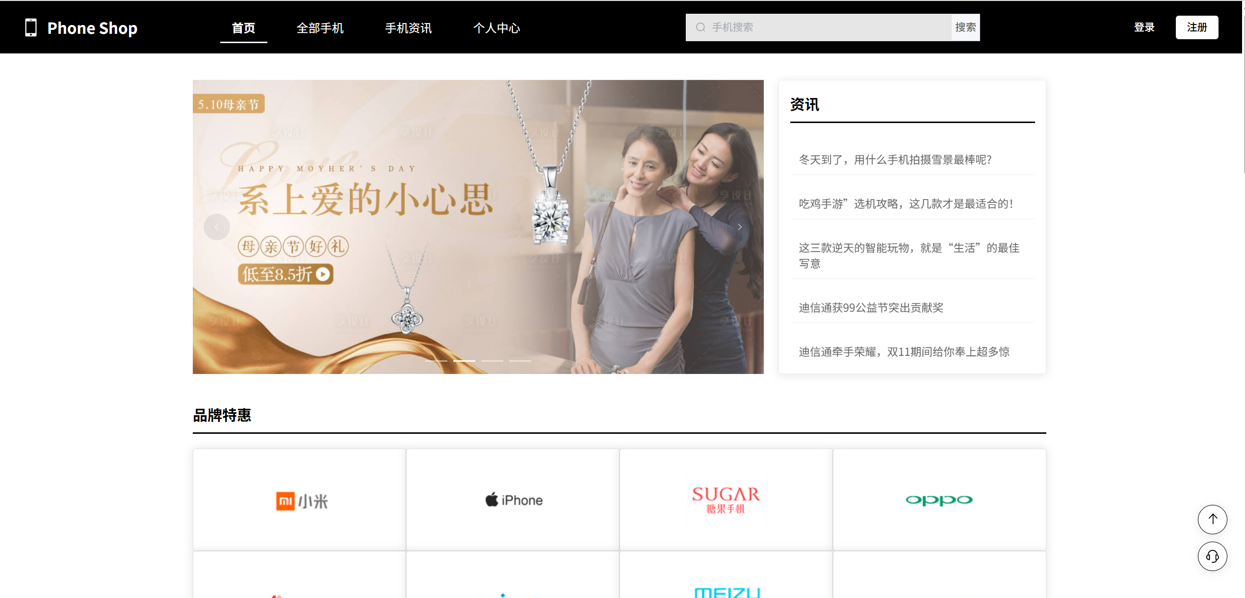 这个板块是电子手机商城的一个吸引模块, 主要承载一些电子手机的资讯文章,可以在后台进行新增和编辑,还有删除 文章。