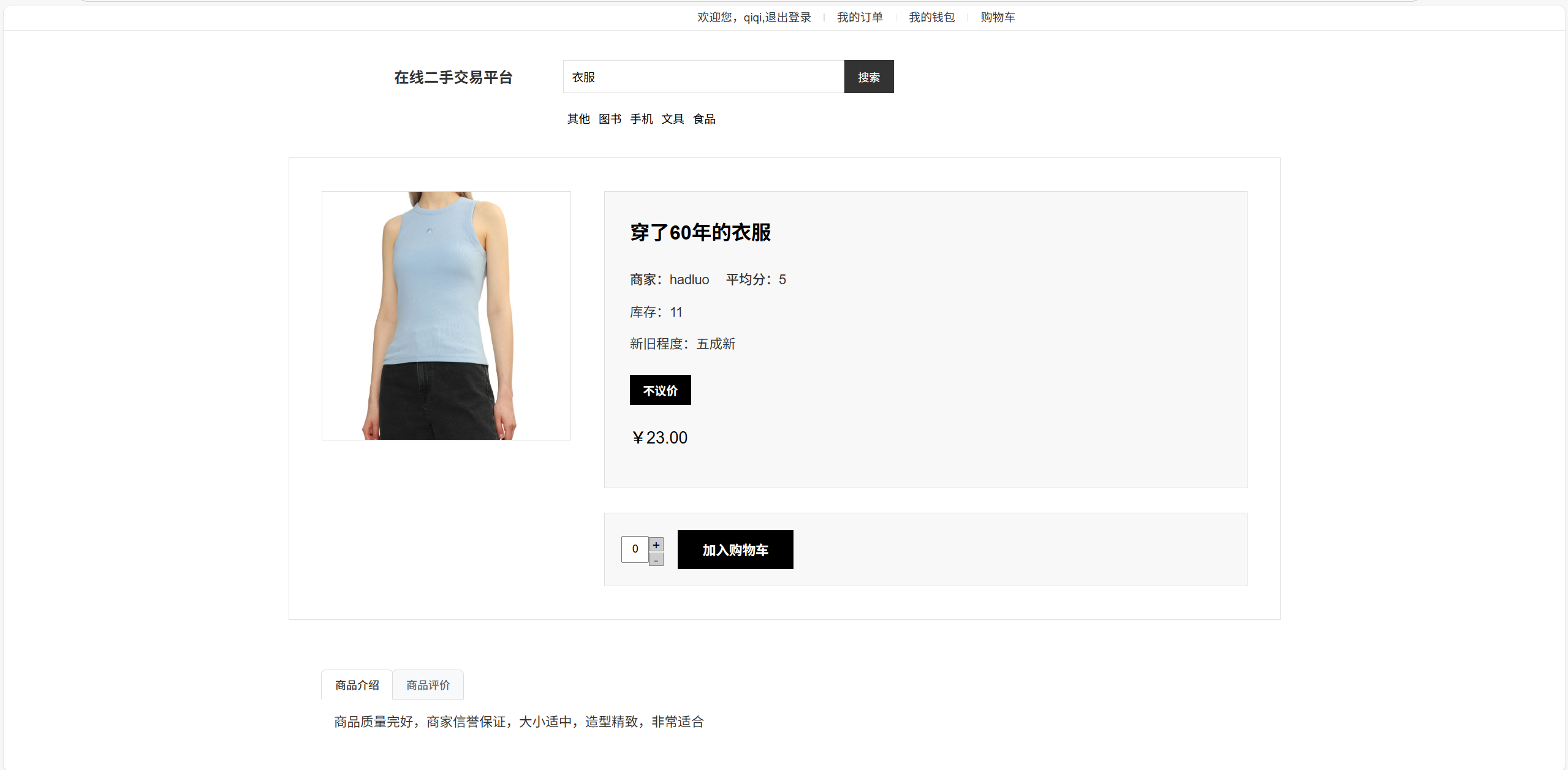 用户在首页可以进行商品搜索, 轮播图查看,展示平台内最新上架的商品。然后点击就可以进入商品详情购买。商品还支持类目进行搜索。