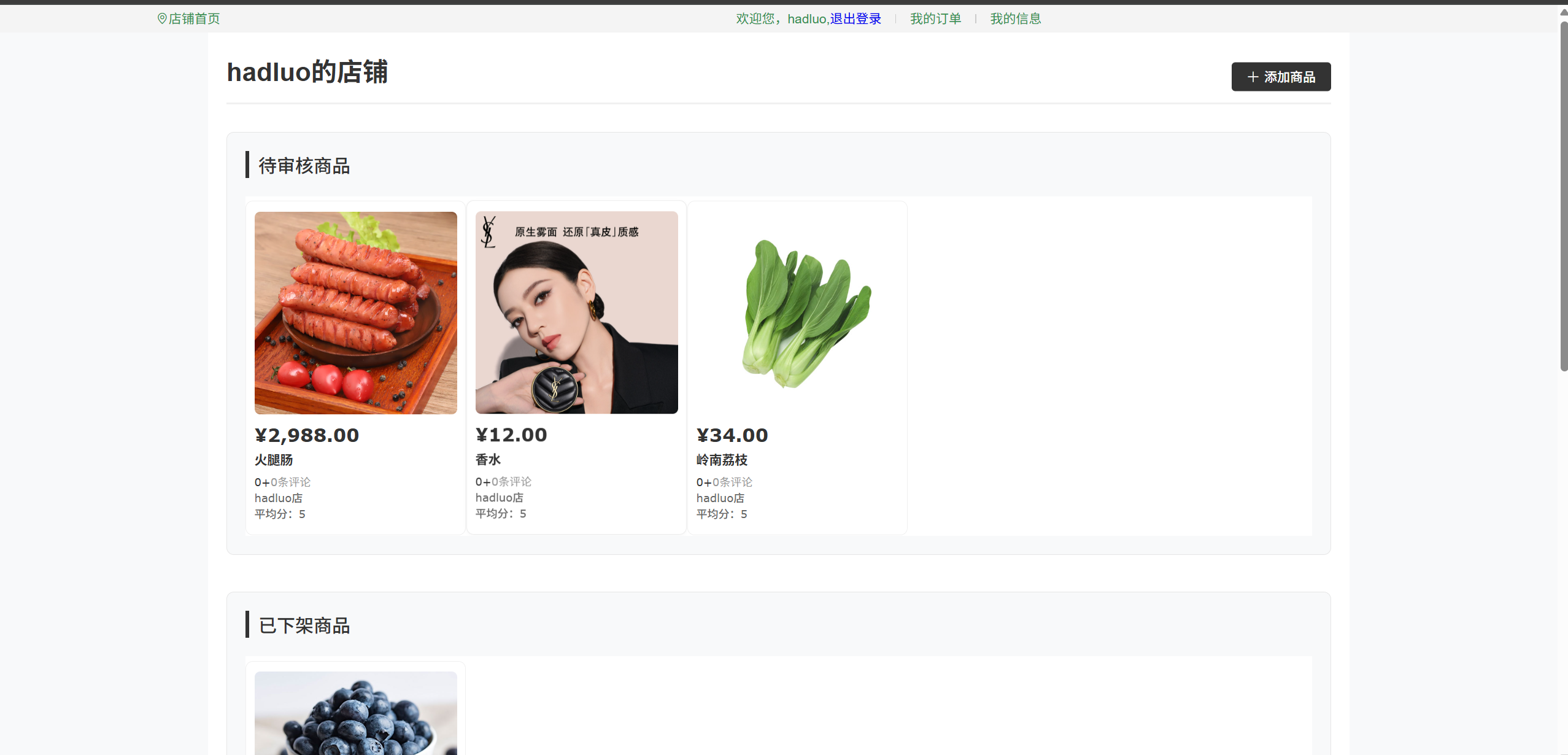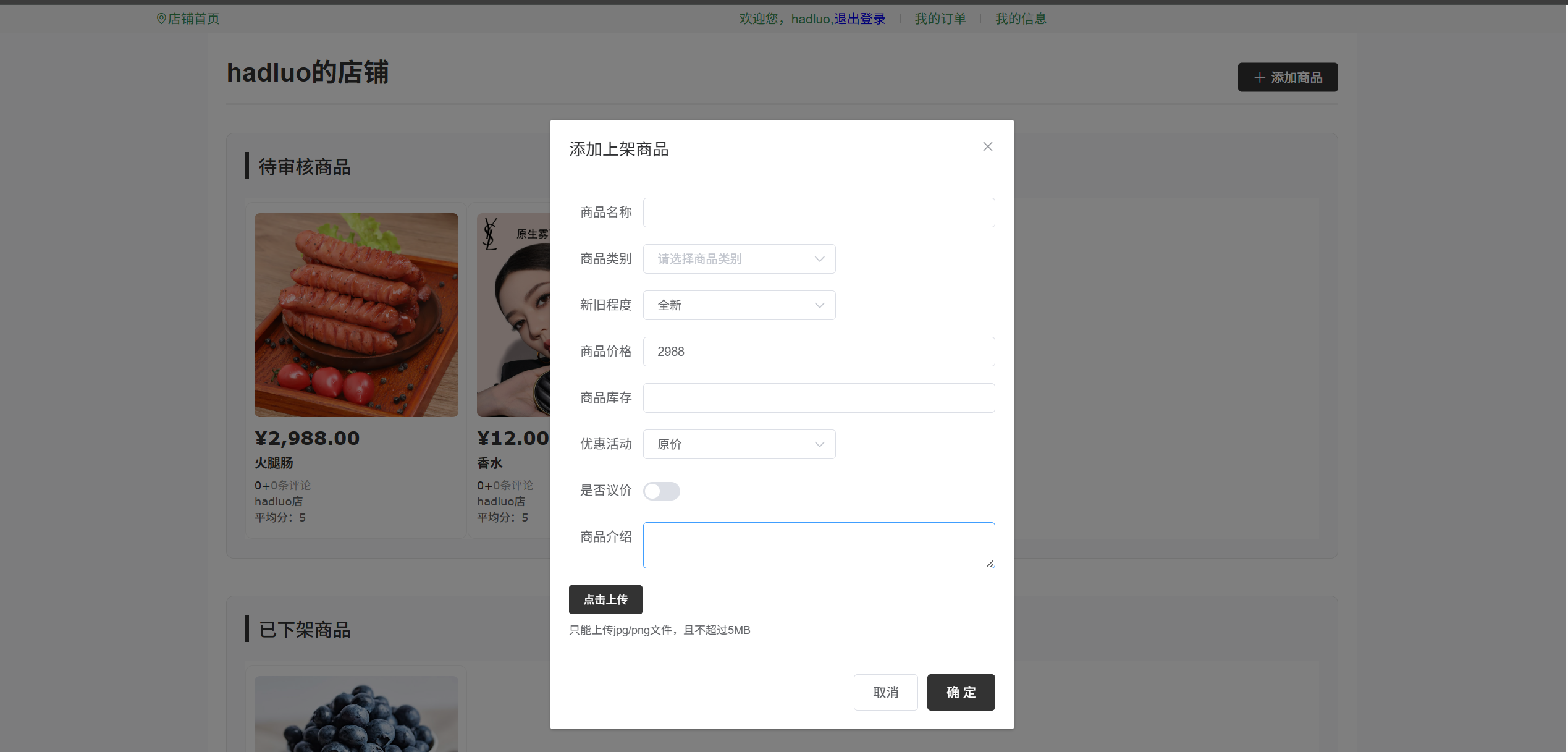 首页还有上架商品的功能,上架商品后,等待管理员审核通过。