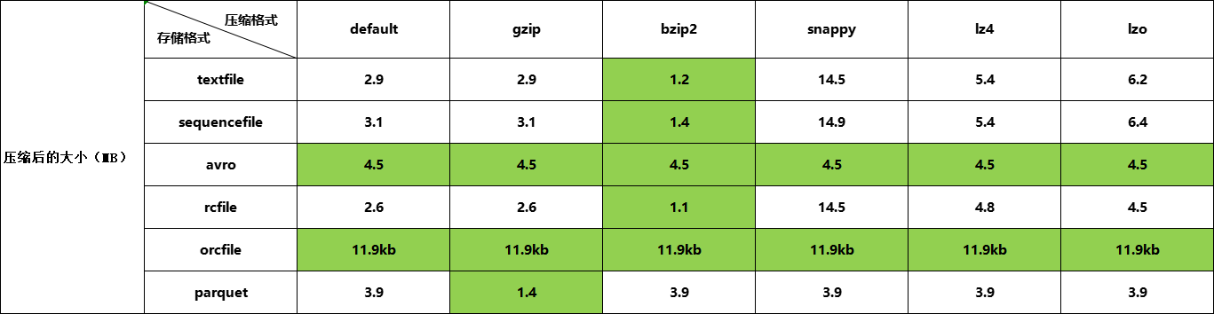 测试文件格式及压缩算法在hive中的表现,小数据量并不能体现出问题及它们的特征。