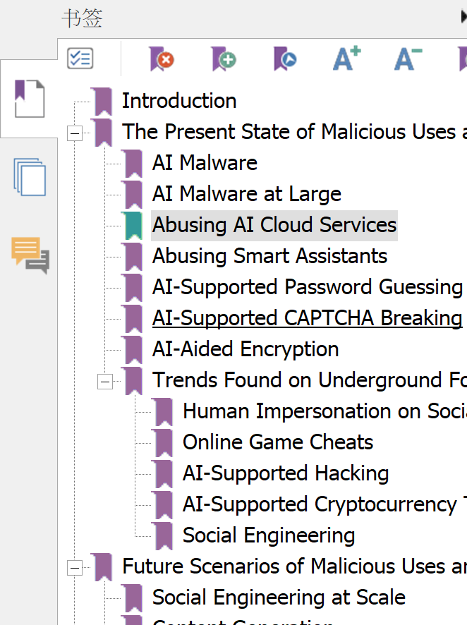 网上查的资料时,发现叫法不一样,“目录”、“书签”、“索引”。但用Adobe Reader打开,显示的都是“书签”(Bookmarks),如下图所示