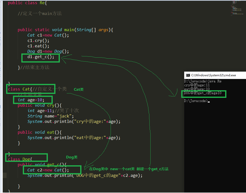 3.2在Dog类的get_c2方法中传入一个参数 Cat类;在主方法堆Dog实例化,并调用get_c2 传入Cat实例化的对象作为参数