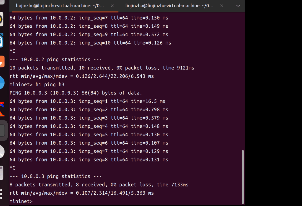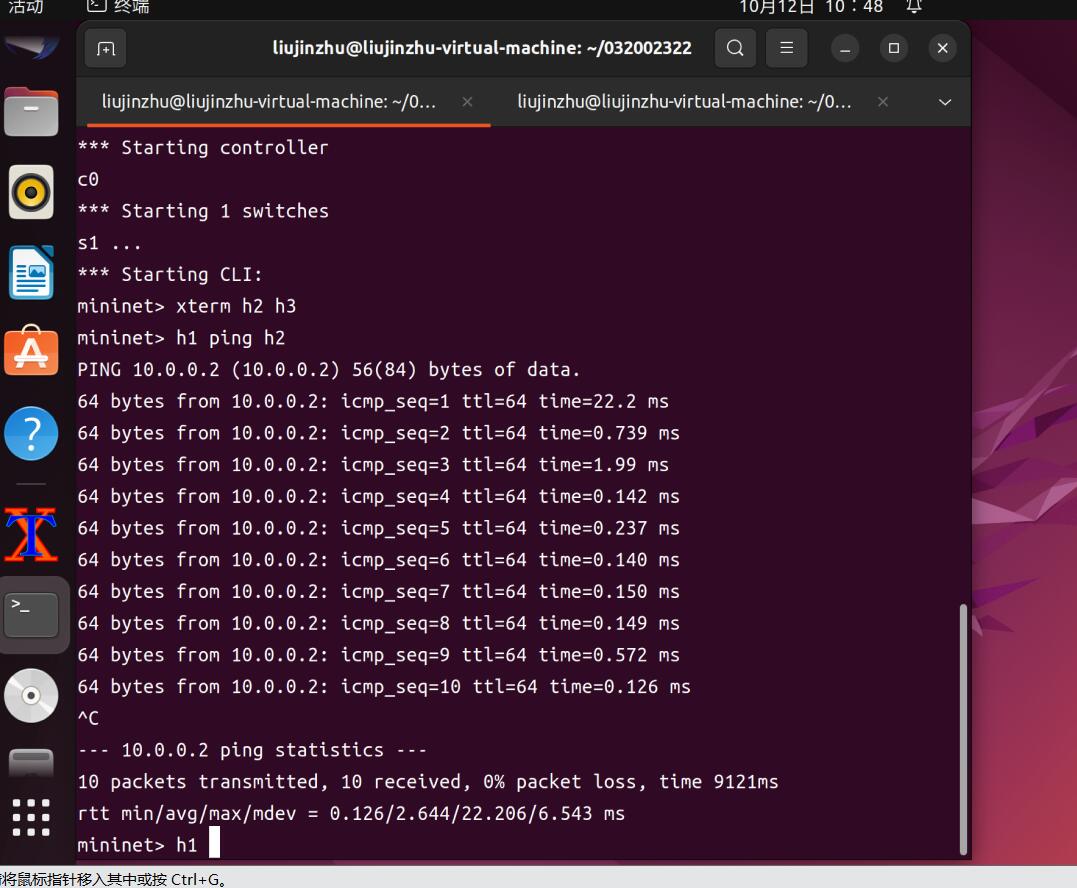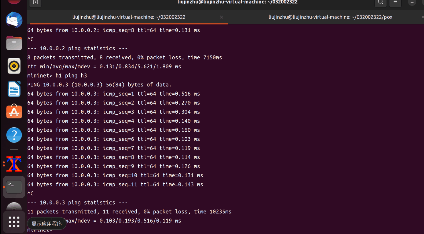 2.通过验证POX的forwarding.hub和forwarding.l2_learning模块,初步掌握POX控制器的使用方法;