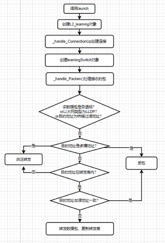 验证Switch模块的功能:让OpenFlow交换机实现L2自学习。所以只有目的主机可以接收到数据包。