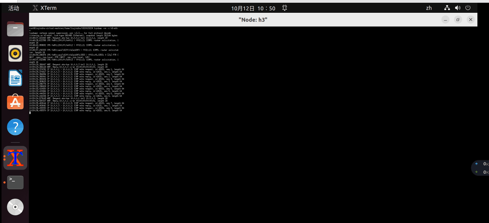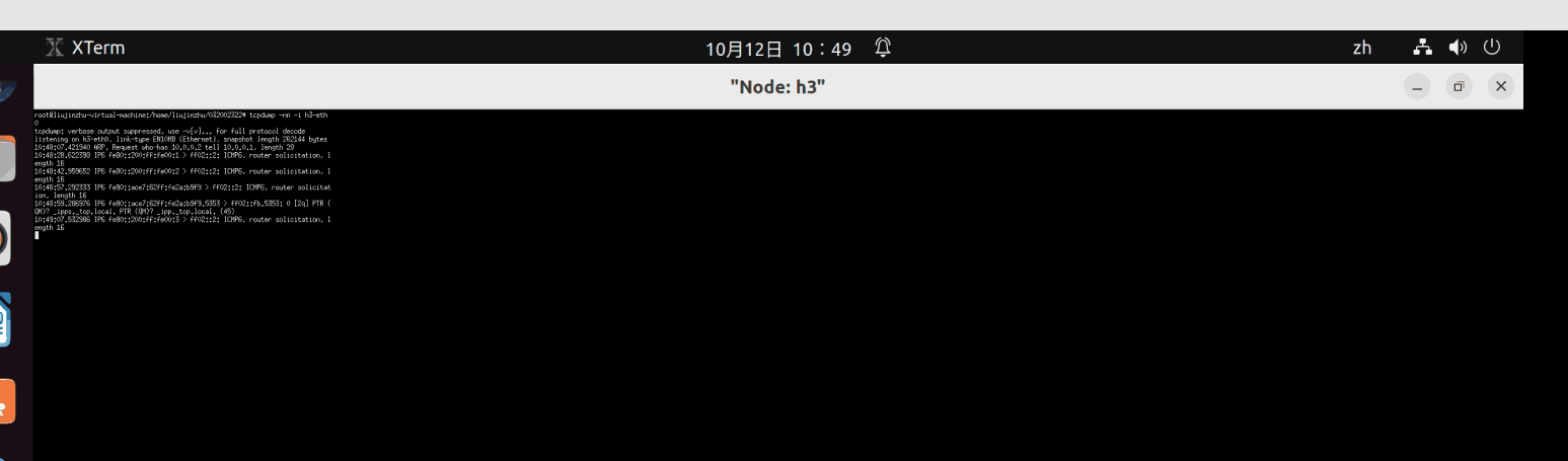 在h3主机终端中输入tcpdump -nn -i h3-eth0