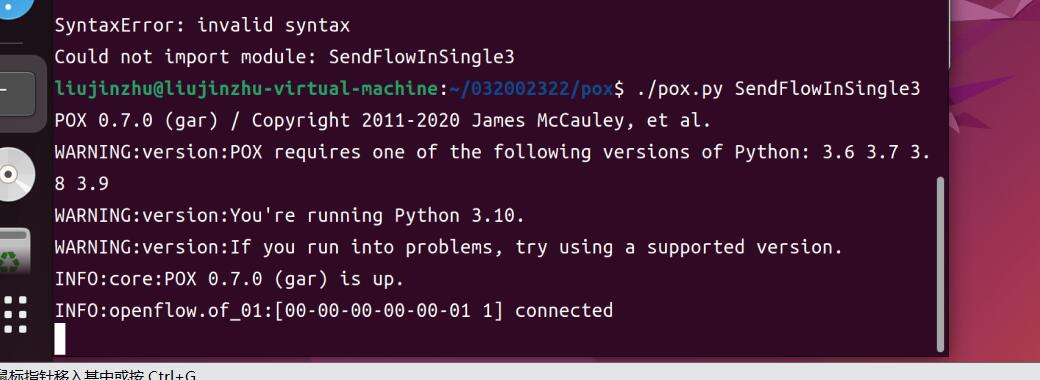 本次实验内容比较简单,主要是学习pox控制器,要先理解 POX 控制器的工作原理,通过验证POX的forwarding.hub和forwarding.l2_learning模块,掌握了POX控制器怎么使用,再通过运用python编写自定义网络应用程序,进一步熟悉POX控制器流表下发的方法。