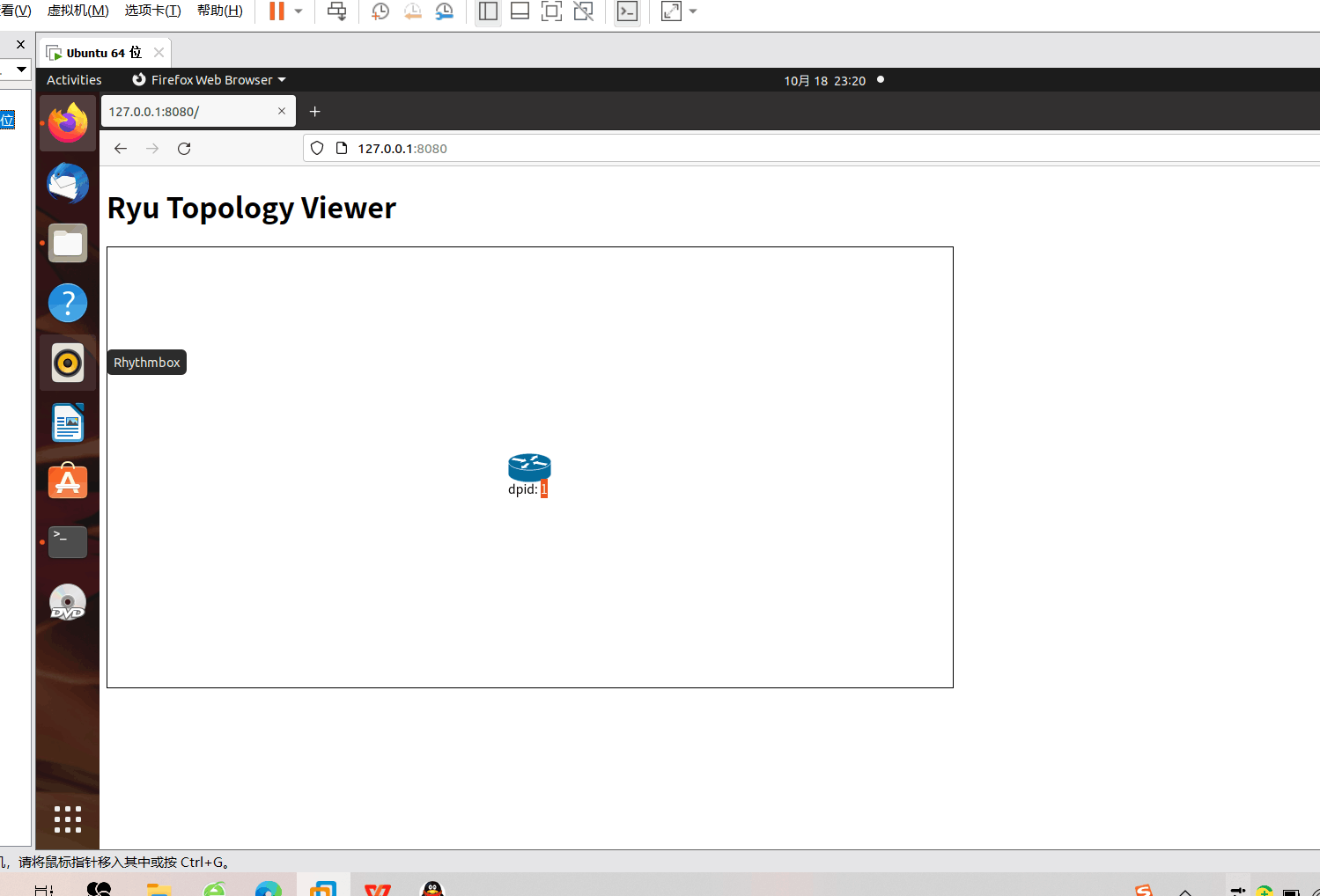 通过Ryu的图形界面查看网络拓扑:在浏览器中输入地址http://127.0.0.1:8080打开ryu的图形界面