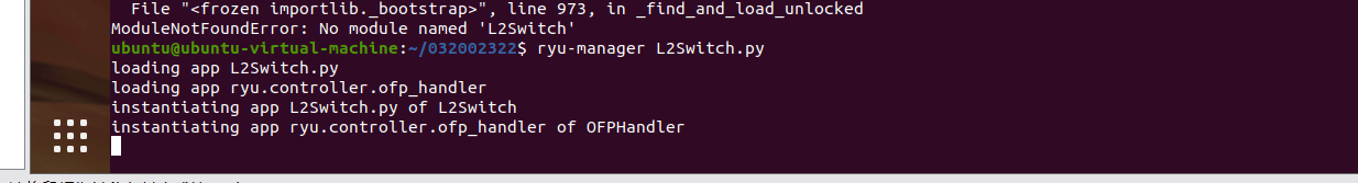 编程修改L2Switch.py,另存为L2032002104.py,使之和POX的Hub模块的变得一致(xxxxxxxxx为学号)