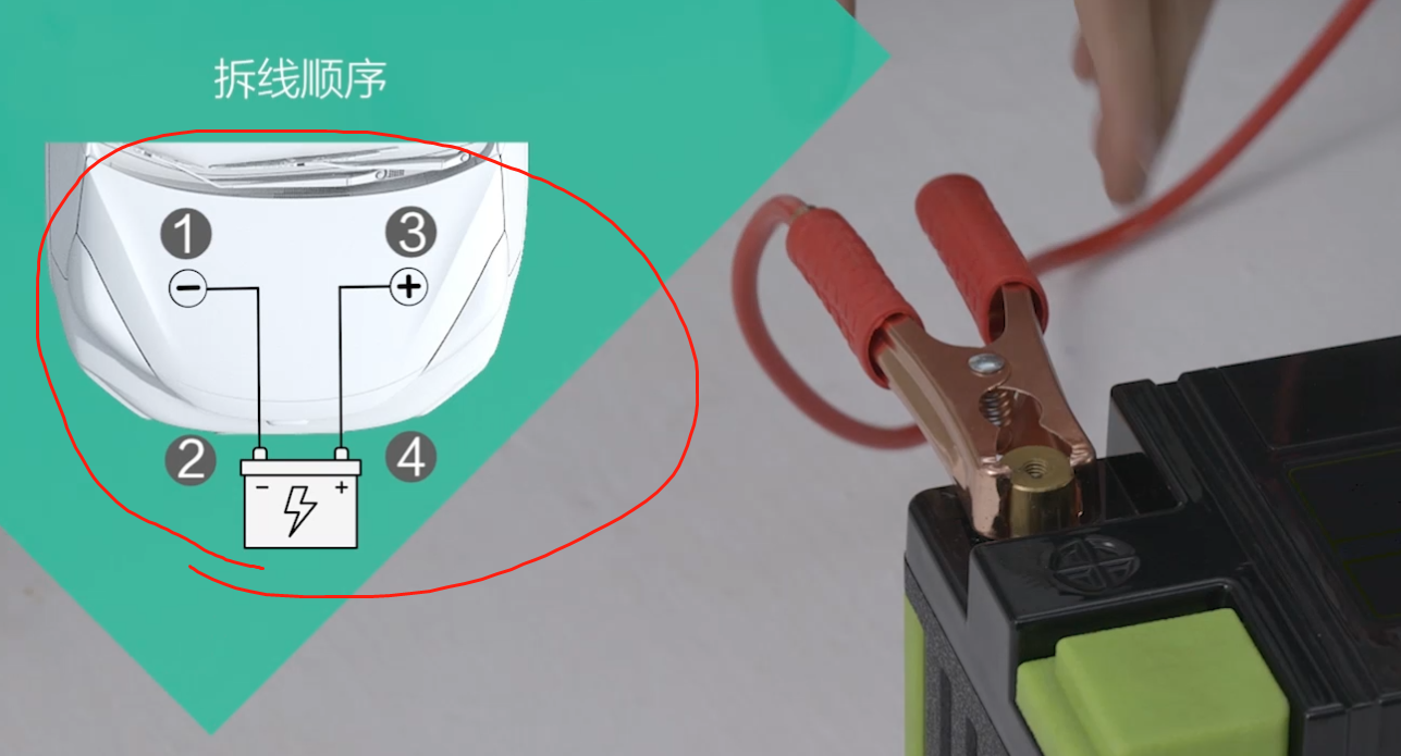 当蓄电池没电,应根据指示小心操作,注意安全。