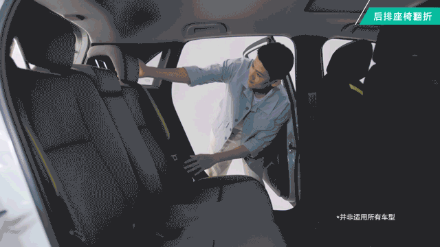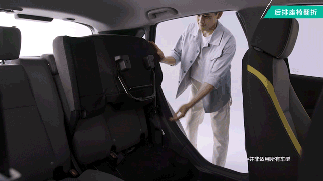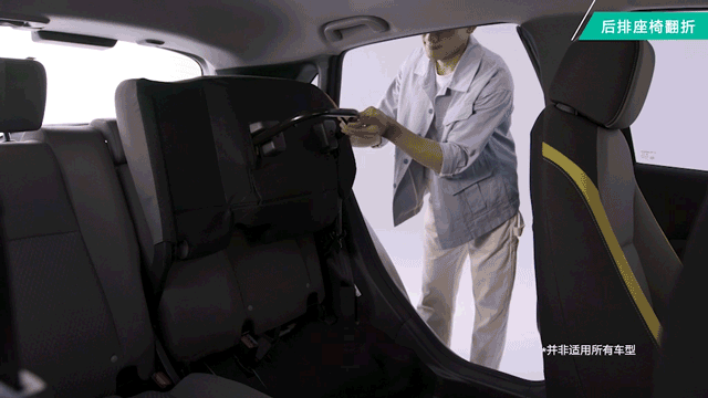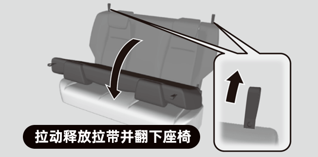 3.拉动释放拉带并翻下座椅。(配备一体式座椅靠背)